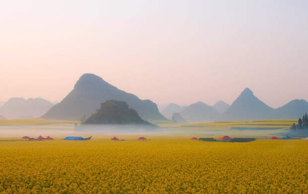 В середине марта окрестности китайского города Хуангшан становятся местом паломничества многочисленных туристов. Это и не удивительно — именно в этот период здесь начинается цветение рапса. А поскольку им здесь засеяны целые поля, то и зрелище это действительно заслуживает особого внимания. Попасть сюда стремятся множество фотографов, которые мечтают сделать красивые фотографии местной природной достопримечательности.